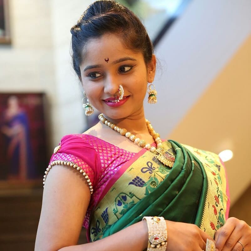 Veena Jagtap is a famous face in the Marathi industry. After completing her education she got her first break with Colors Marathi’s serial ‘Radha Prem Rangi Rangali’. She did her schooling from Guru Nanak High School, Ulhasnagar. She has been a studious girl & completed her bachelor’s in Banking and Insurance. She comes from a simple middle-class family. She was always interested in cultural activities from her childhood.